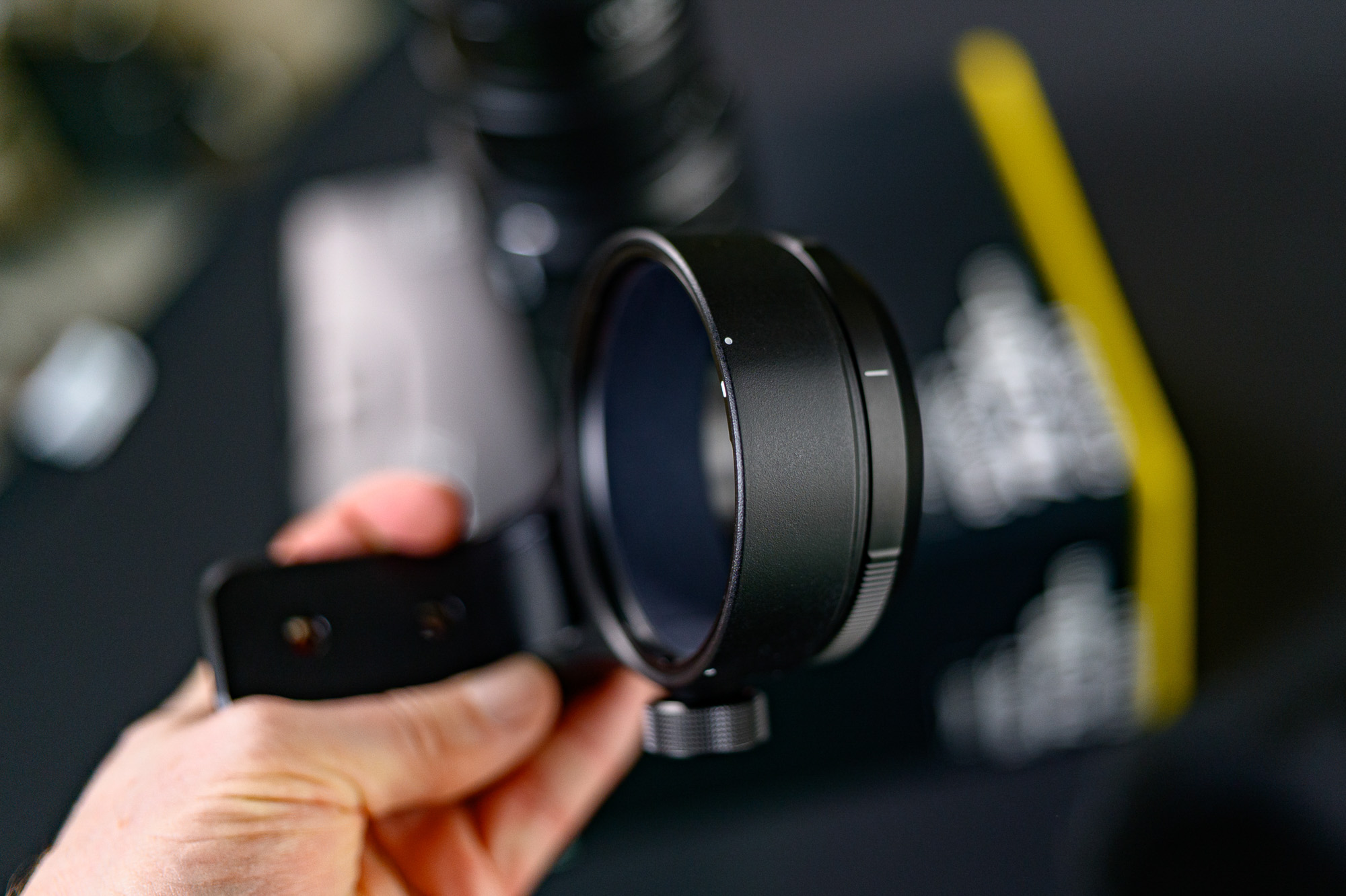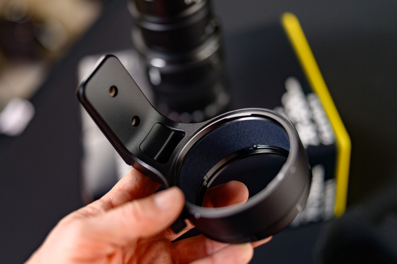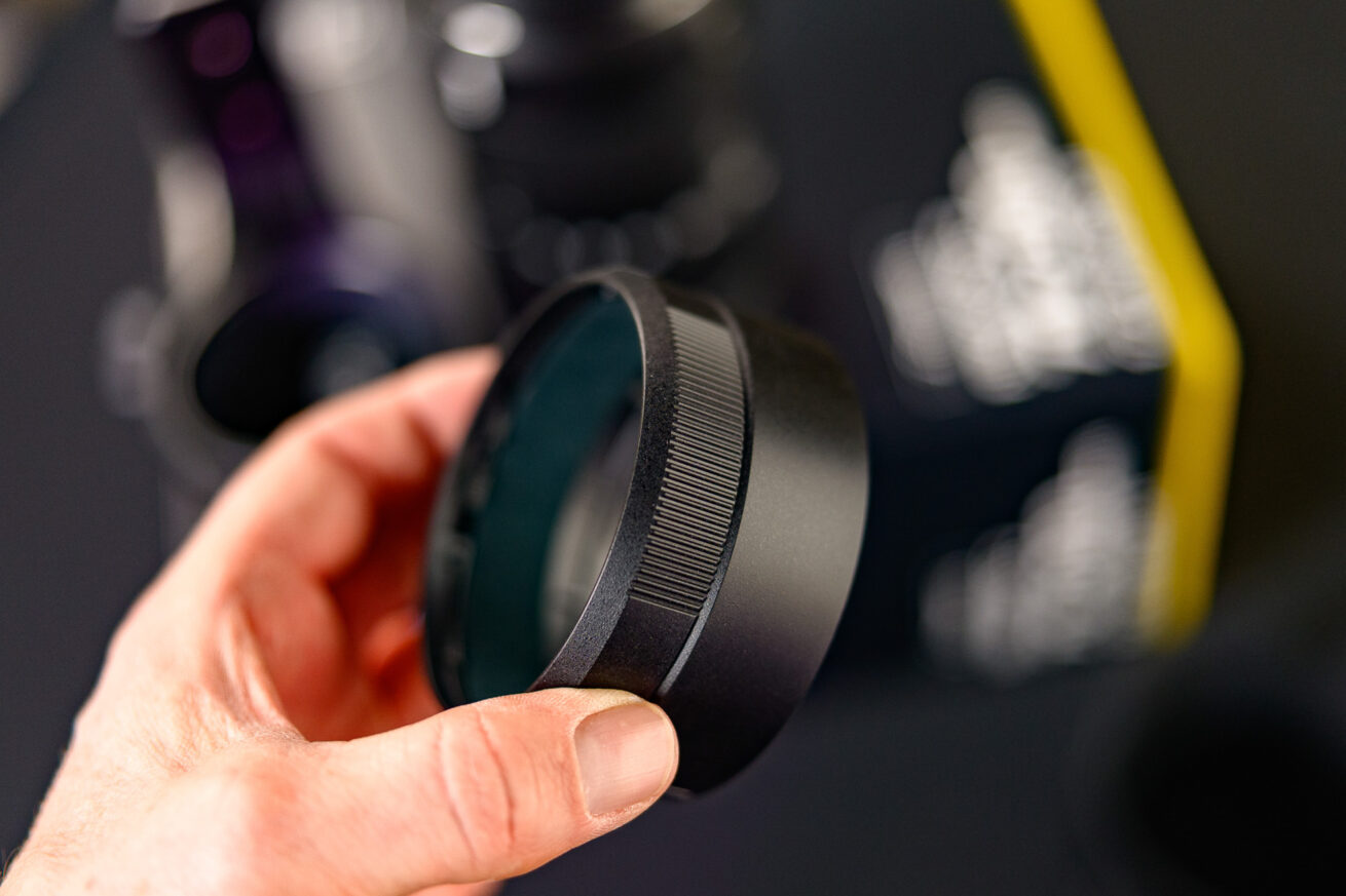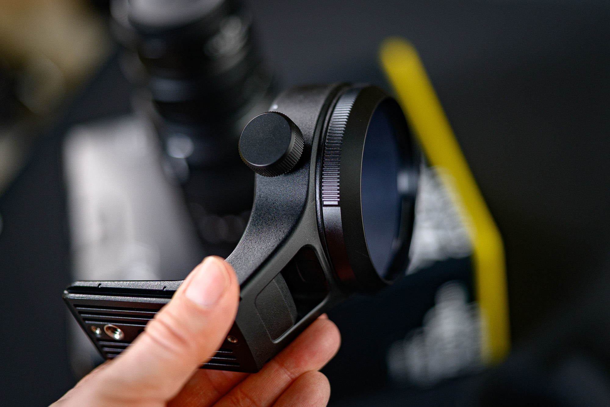 - Osłona przeciwsłoneczna z dziurą na dostęp do obracania filtrów: naajs