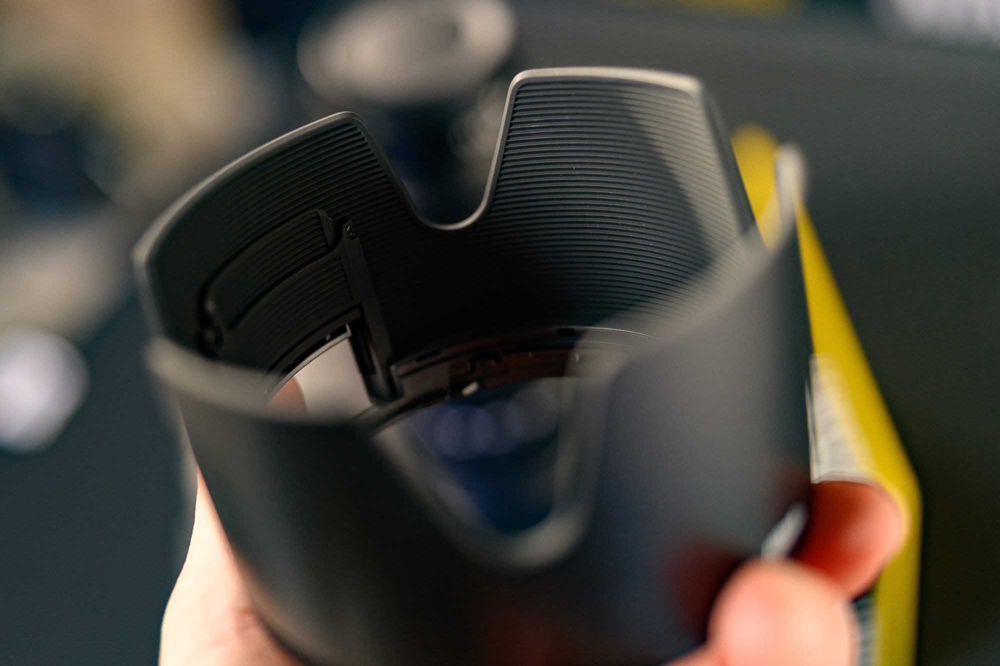 Zastosowano nowe dwustronne soczewki asferyczne które pozwoliły „odchudzić” obiektyw o 350 g, ale ich tekstura (ślady produkcji) przebija w bokeh, dodatkowo nowe powłoki mocno podbijają kontrast, widać detale, które starszy model po prostu „rozmydlał”.